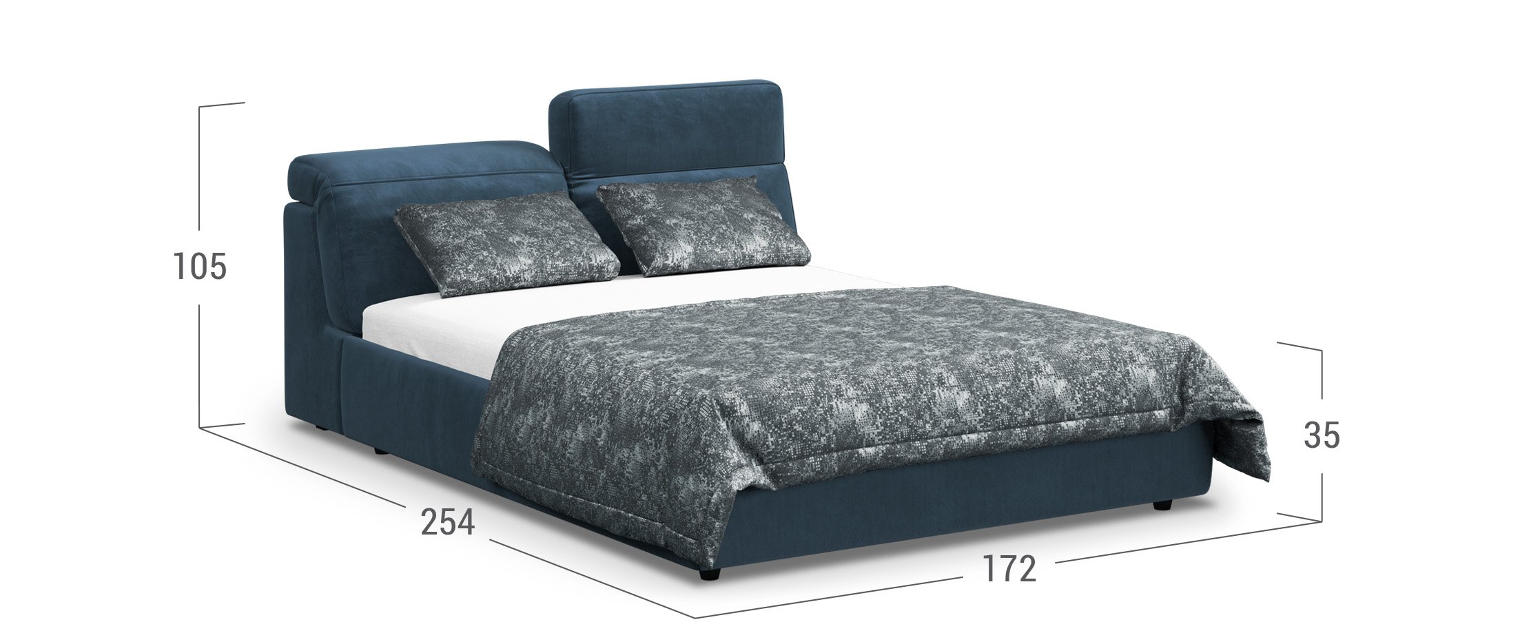 Мягкое изголовье имеет пять вариантов наклона подушек, позволяя Вам находить для себя максимально удобное положение – например, за чтением книги или просмотром телевизора. Вертикальное положение подушек создает более привычный образ кровати. Горизонтальное – более трендовый.