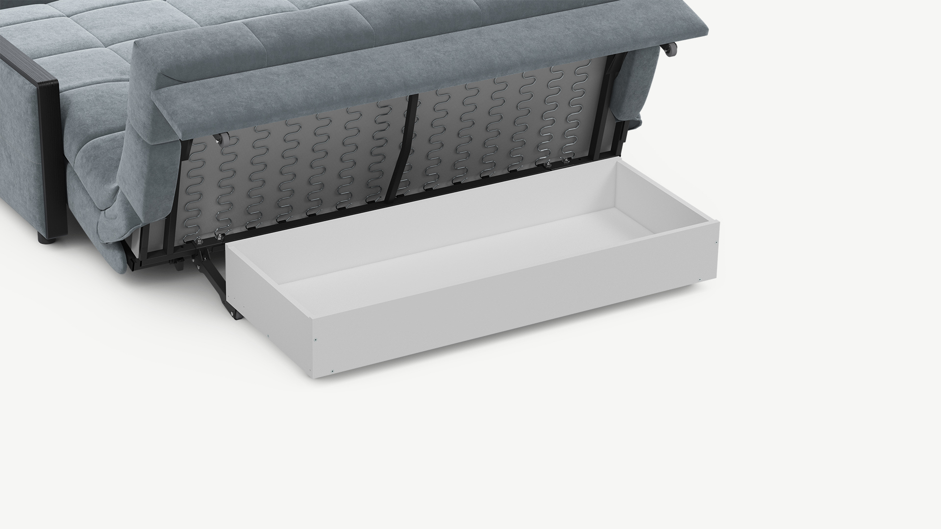 В настоящий момент набирает популярность использование бельевых коробов в качестве емкости для хранения. Например, для некоторых механизмов трансформации количество одновременно установленных бельевых коробов варьируется — один или несколько бельевых коробов могут быть установлены под нужными секциями дивана на Ваш выбор.