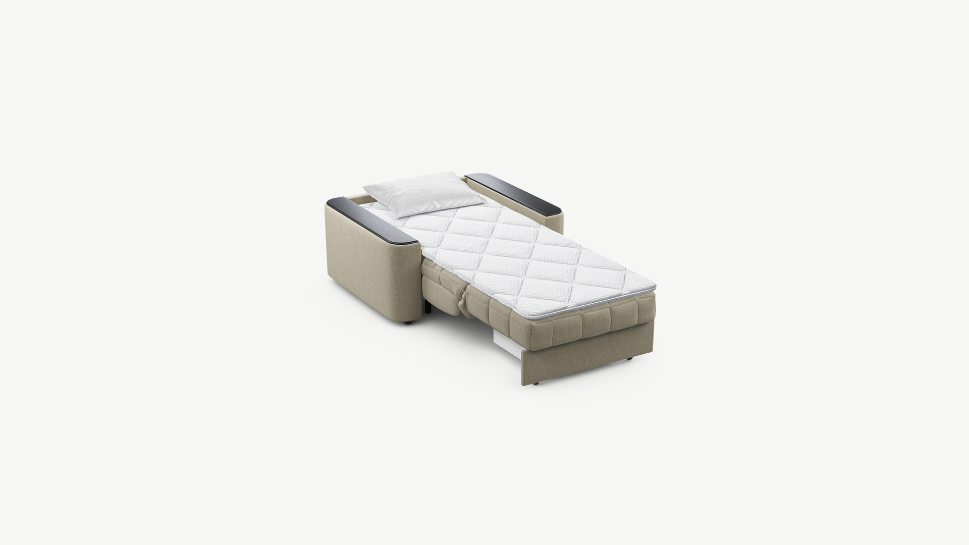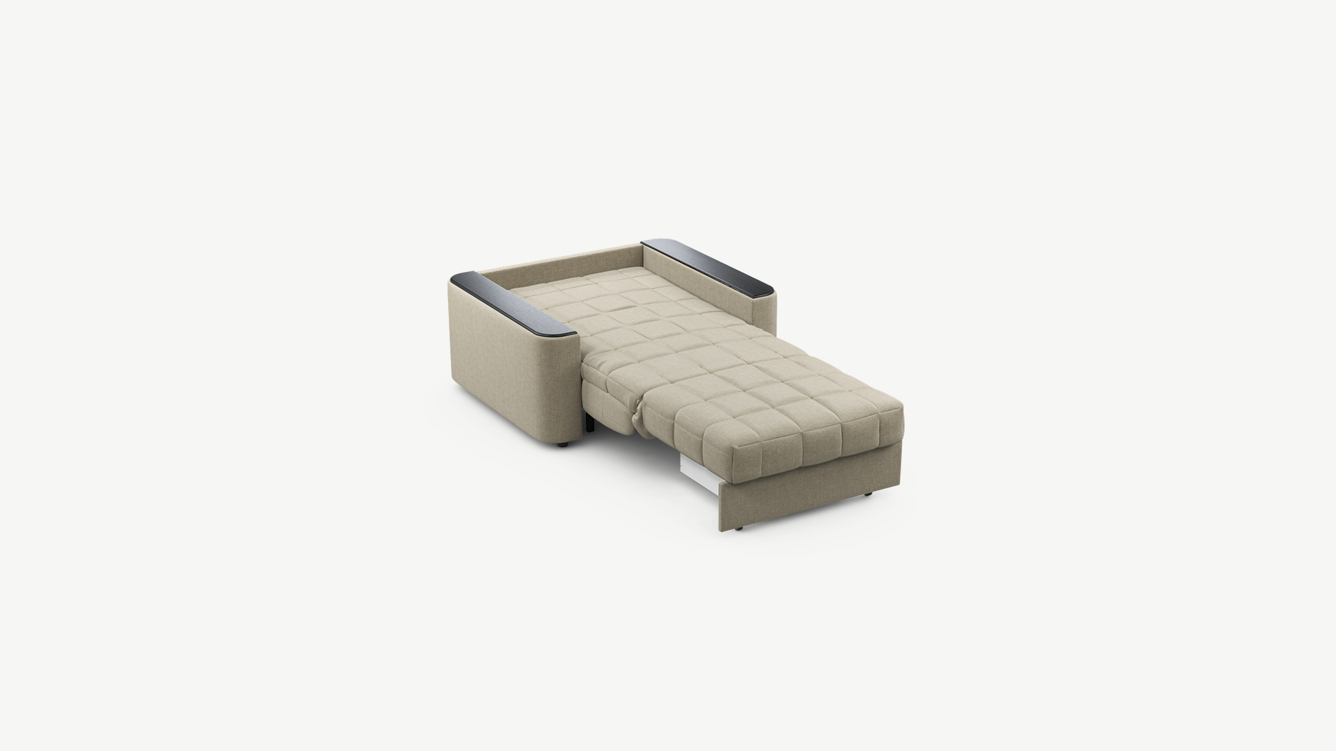 Объемные подлокотники — стильная деталь, отлично вписывающая кресло-кровать в интерьер современной городской квартиры.