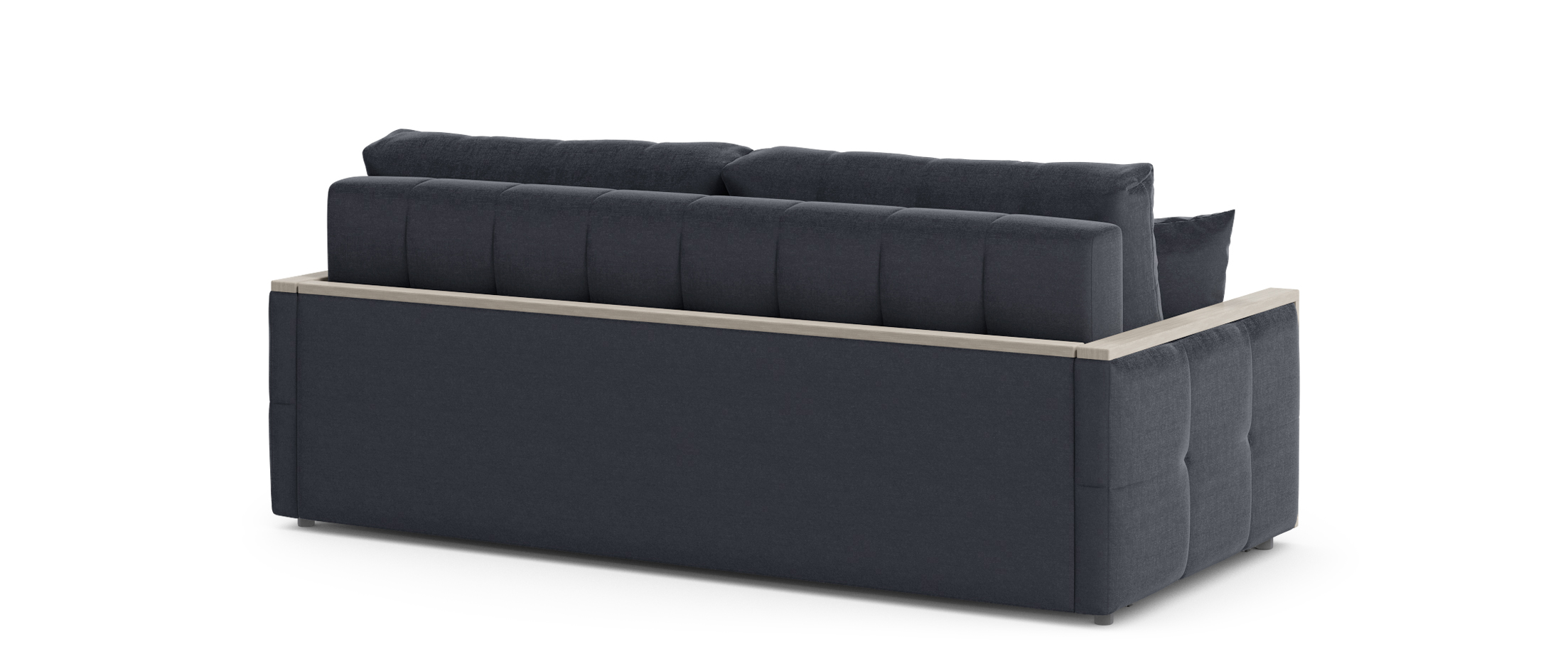 Спинка, выполненная в обивочной ткани, позволяет ставить диван в центре комнаты и зонировать пространство.