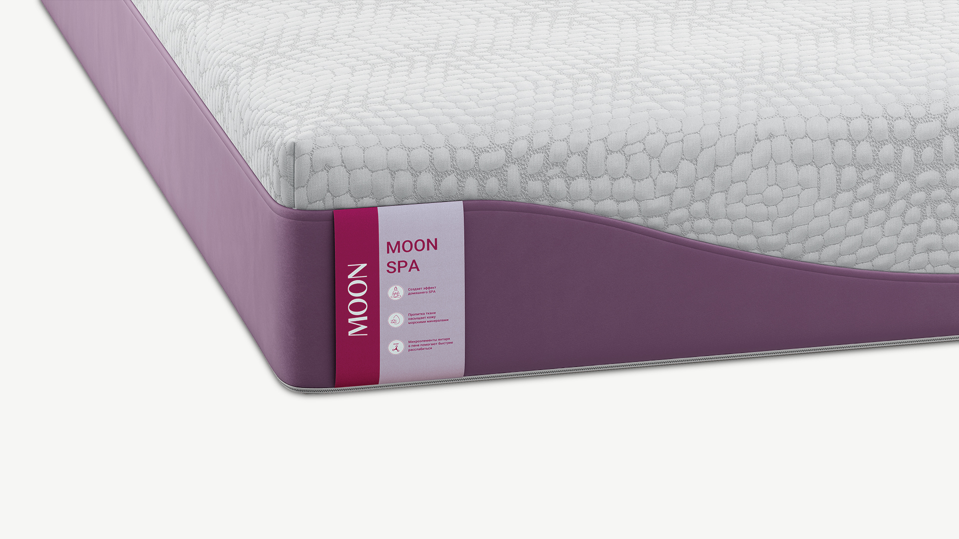 Матрас беспружинный 9 зонРаботая над коллекцией MOON SPA, мы отдали предпочтение комплексному подходу. Это сочетание морских минералов и янтарной пены, инновационных пен с эффектом памяти, а также использование специального чехла с массажным эффектом. Таким образом, Вы получаете матрас, позволяющий ощутить расслабление и покой, аналогичные эффекту спа-процедур.