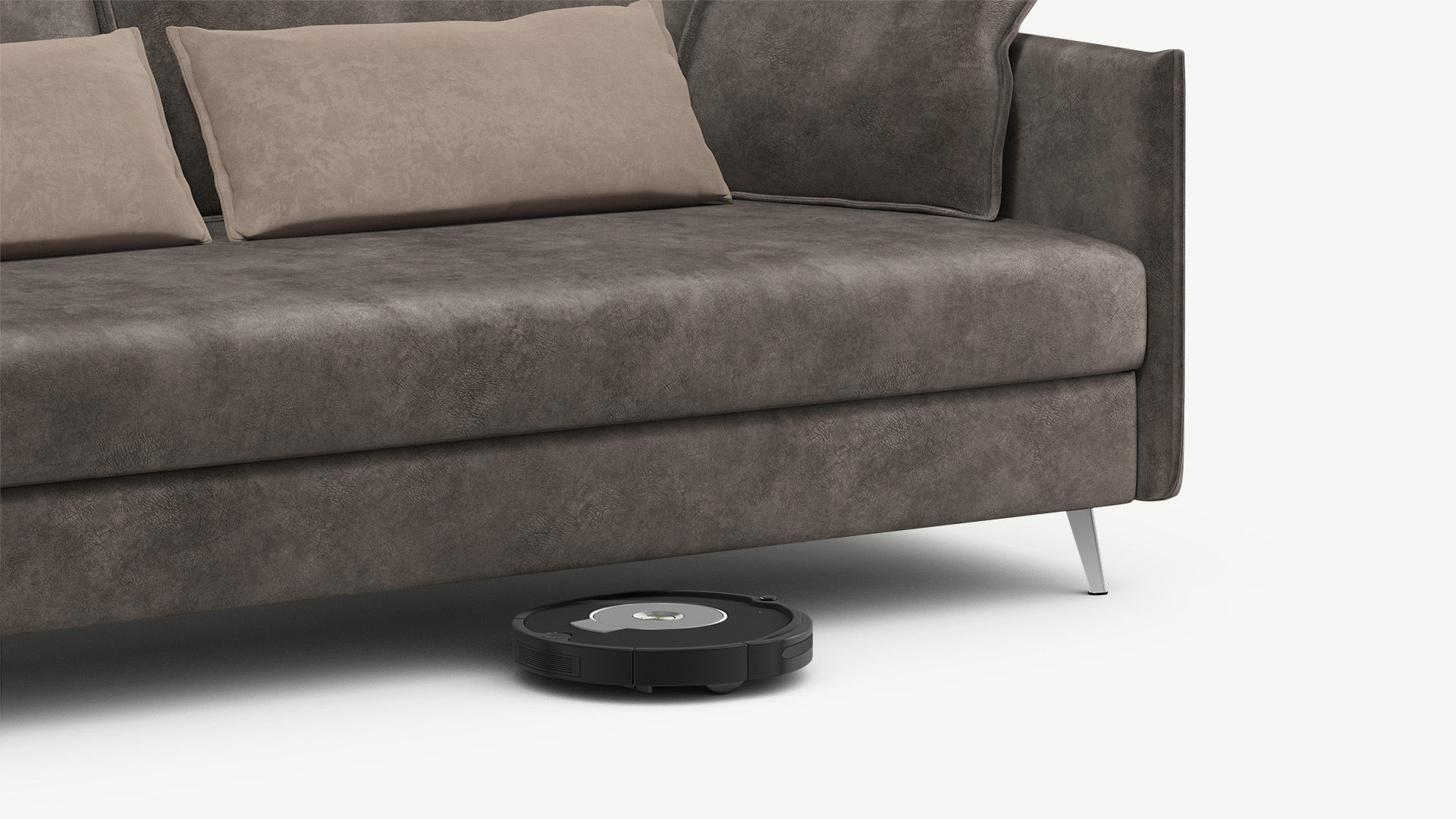 Благодаря высоким наклонным опорам под диваном проходит робот-пылесос и легко проводится влажная уборка, что обеспечивает чистоту и порядок в доме.