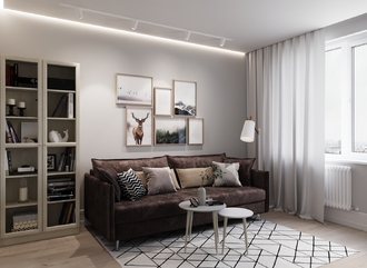 Спинка, выполненная в обивочной ткани, позволяет использовать диван для зонирования пространства.