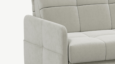 Диван удивит Вас необычной функциональностью. У подлокотников дизайна MOON 120 есть карманы! Так, отдыхая, Вы держите под рукой все необходимое — от ноутбука и пульта до… помады! Мягкие узкие подлокотники и стежка в квадрат, использованная практически для всей поверхности дивана, задают дизайну современный образ. Узкие подлокотники — это не только тренд последнего времени, но еще и компактность. Удачные визуальные решения делают диван стильным.