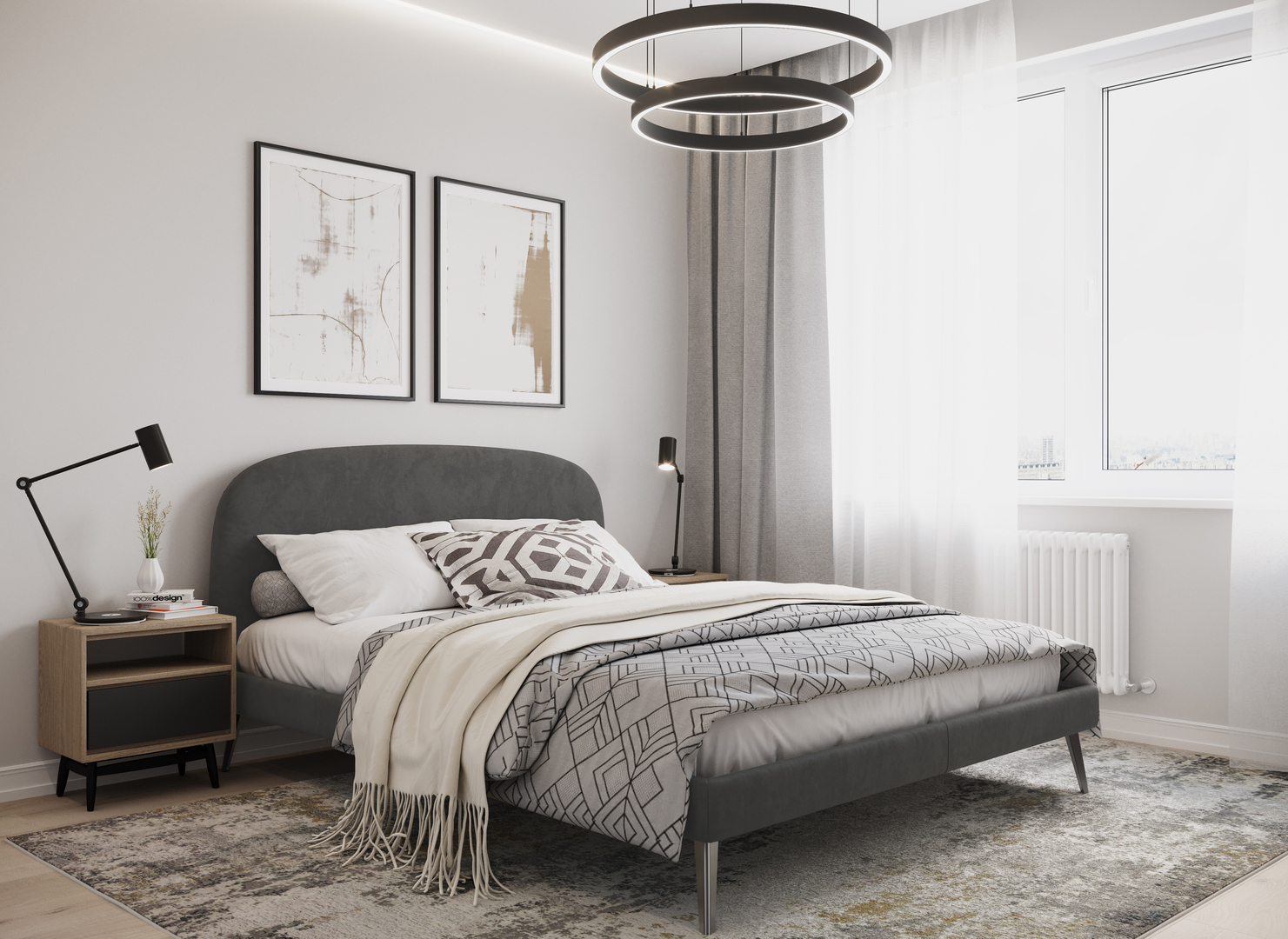 Создать гармоничный интерьер и завершить образ спальни помогут дополнительные аксессуары, например: тумбы, банкетки, подушки.