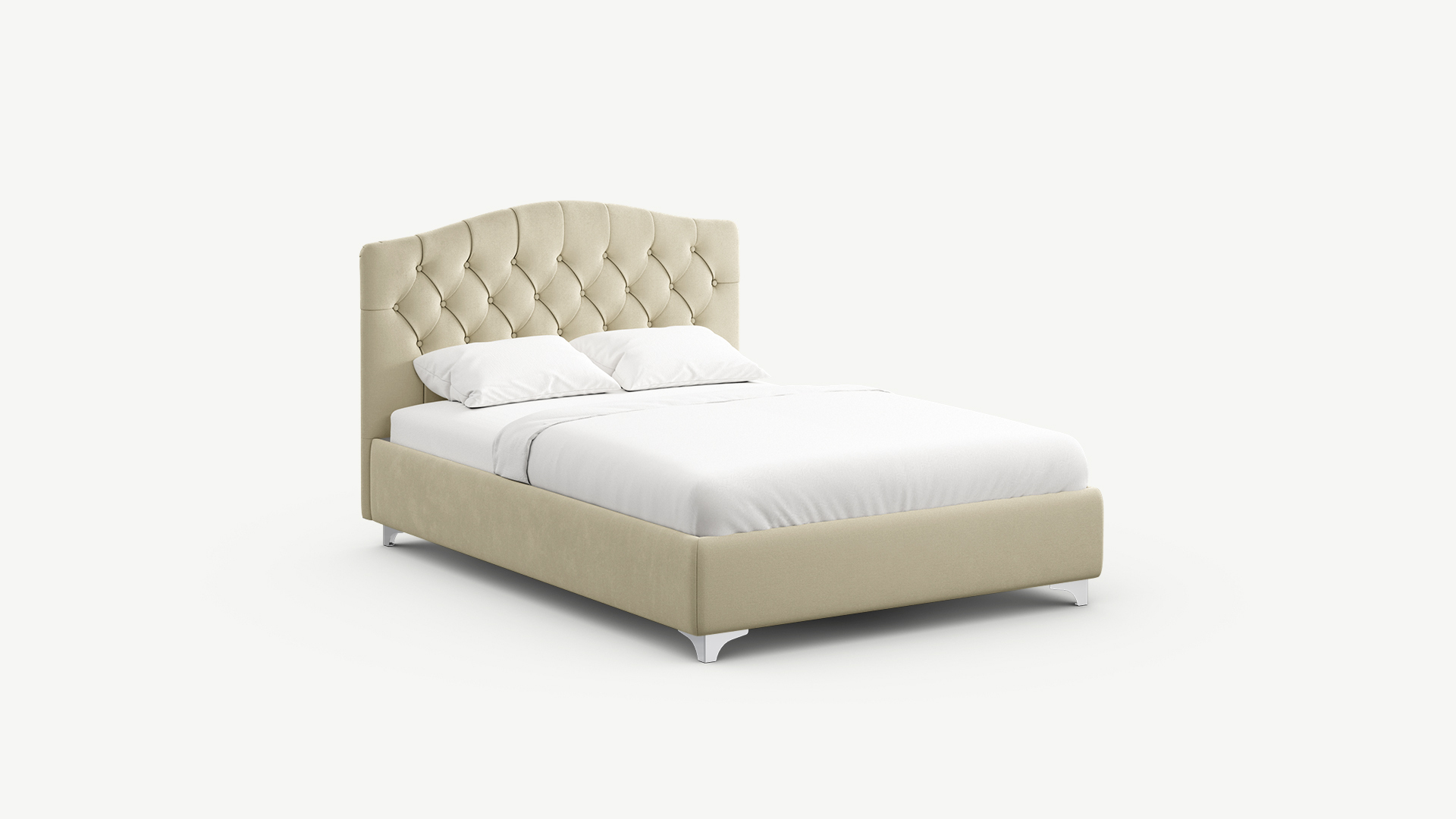 Кровать MOON 1157 создает ощущение праздника. Фигурное изголовье с классической каретной стяжкой формирует торжественный образ кровати, привнося в интерьер элементы дворцового стиля и роскоши.