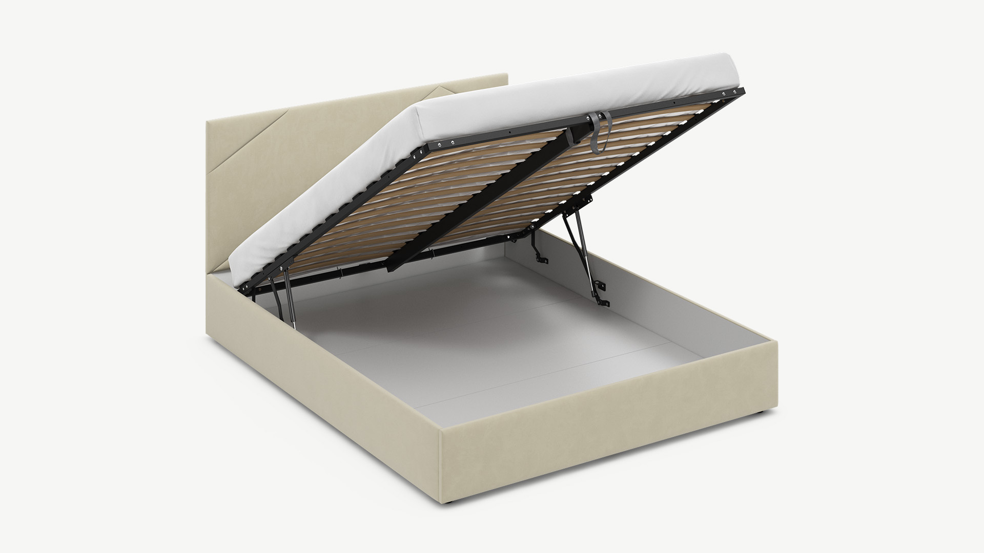 • Скрытая под основанием вместительная емкость без внутренних перегородок позволяет использовать всю площадь подкроватного пространства для хранения вещей.