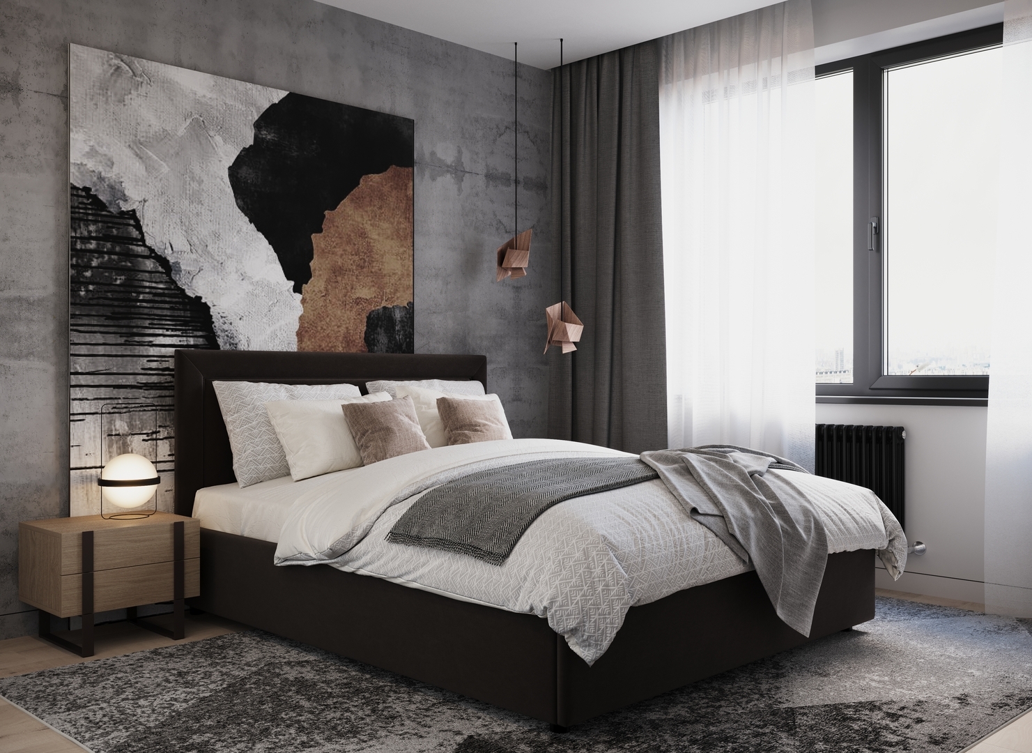 Создать гармоничный интерьер и завершить образ спальни помогут дополнительные аксессуары, например: тумбы, банкетки, подушки.