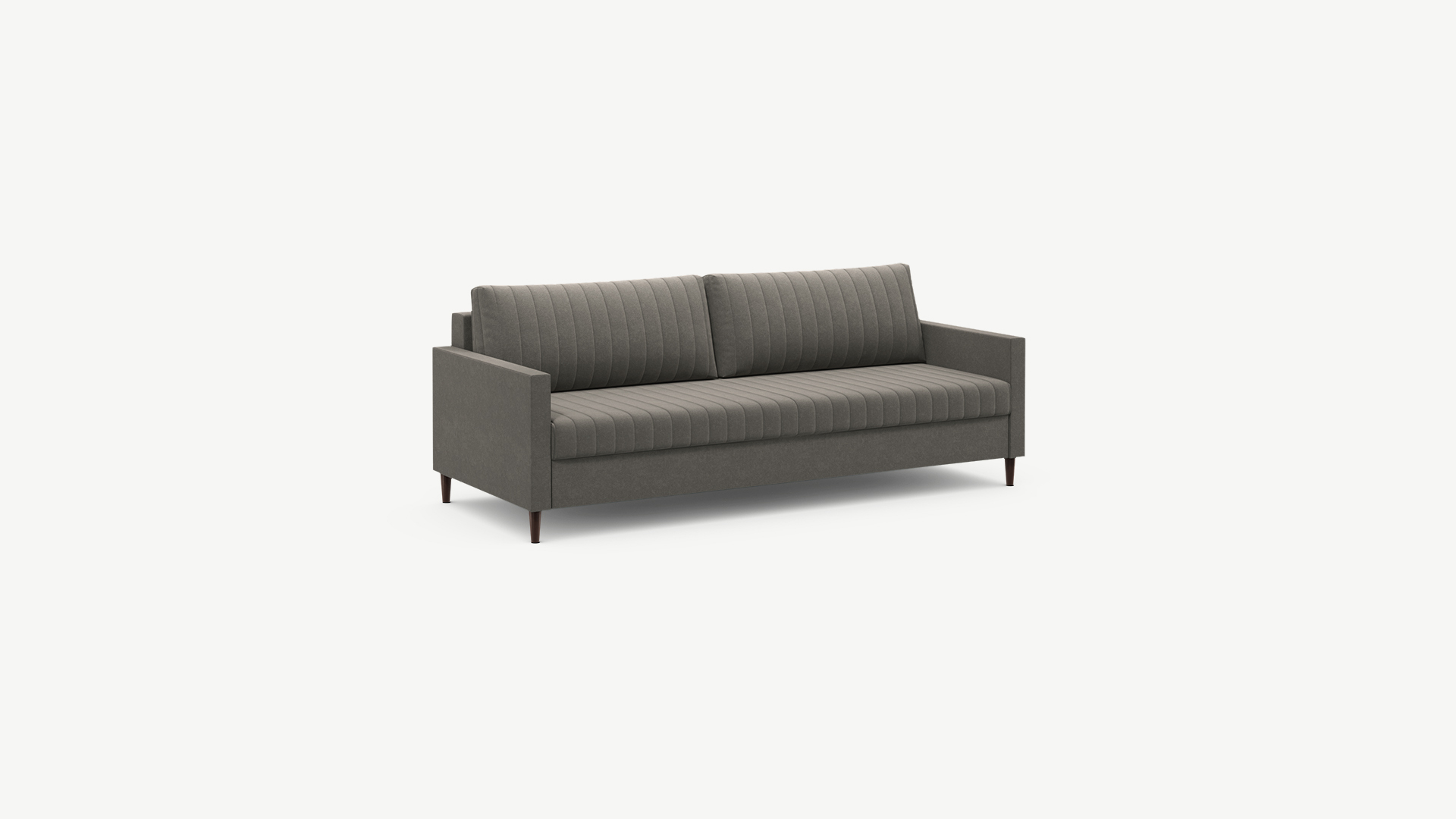 Ритмичный ряд вертикальных линий «багетной стежки» визуально вытягивает фигуру дивана, выгодно обыгрывая геометрию окружающего пространства. Высокие опоры добавляют конструкции легкости. Узкие подлокотники завершают образ дизайна, акцентируя внимание на силуэт MOON FAMILY 143.