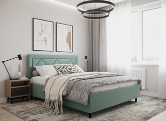 Фактура обивочного материала подбирается дизайнерами с учетом технологических и стилевых особенностей кровати.
