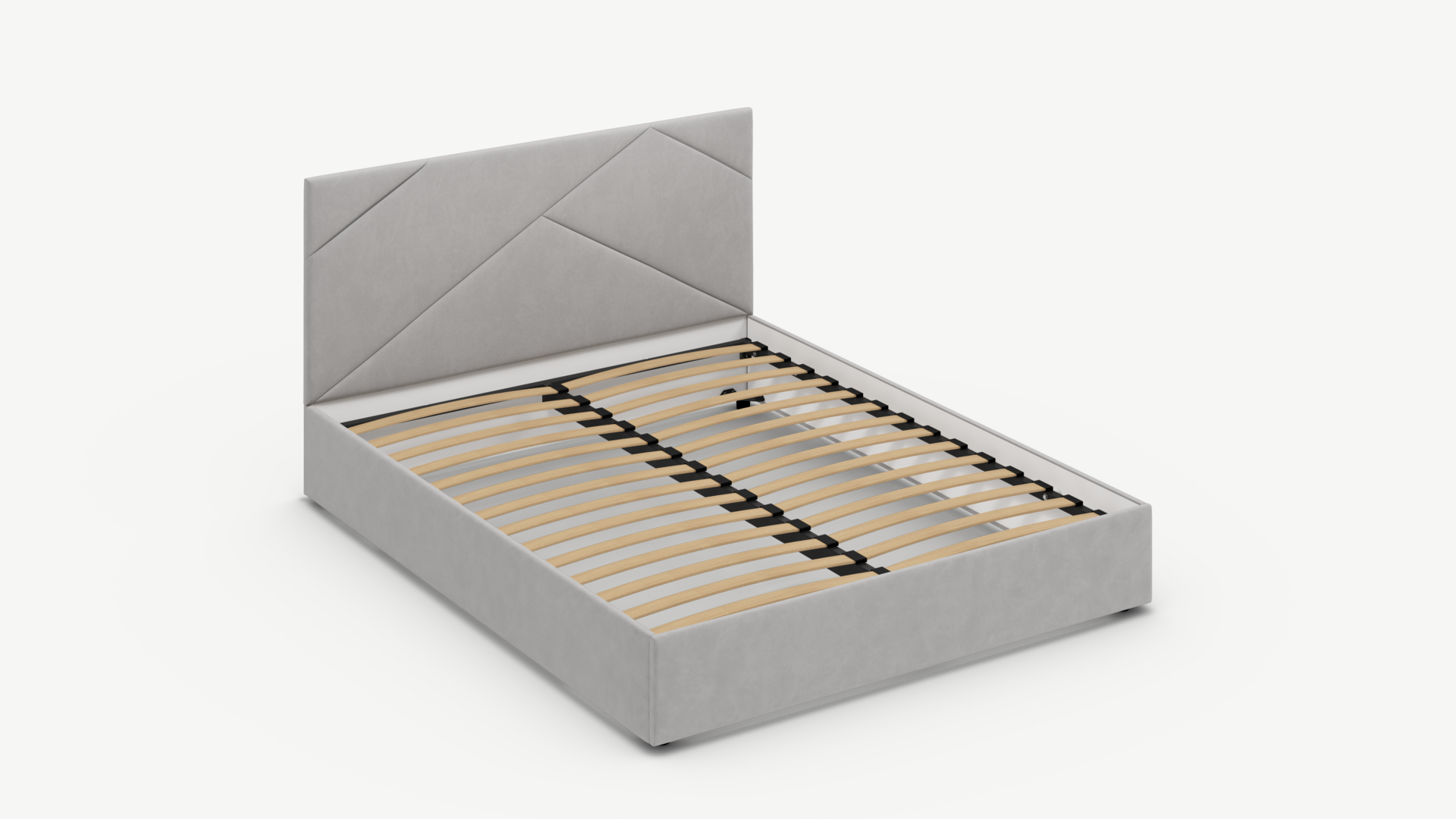 MOON FAMILY 1257 привлекает внимание оригинальным исполнением: широкие полосы ткани эффектно пересекают периметр изголовья, создавая на нем графический орнамент. Элегантным и практичным акцентом служат скрытые карманы, расположенные по его углам. Лаконичные формы объемных царг создают единый гармоничный образ и фокусируют внимание на центральном текстурном элементе кровати.