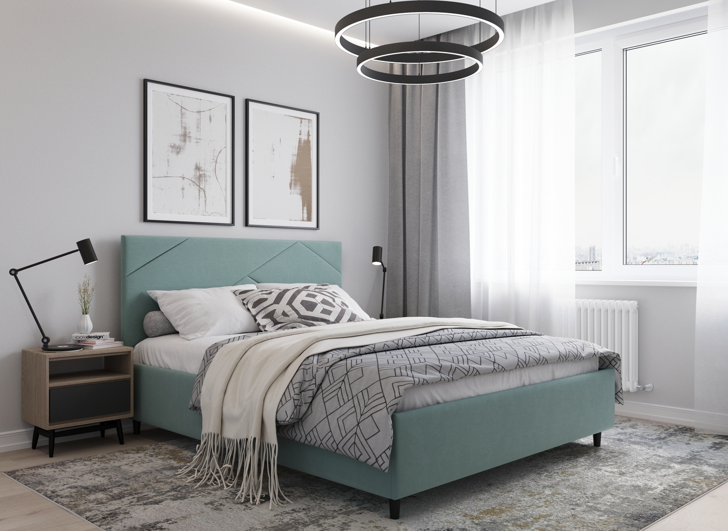 Элегантным и практичным акцентом служат скрытые карманы, расположенные по его углам. Лаконичные формы объемных царг создают единый гармоничный образ и фокусируют внимание на центральном текстурном элементе кровати.