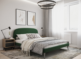 Кровать выполнена из хороших, качественных материалов, цвет красивый, обивка мягкая и ее можно без усилий очистить от пыли