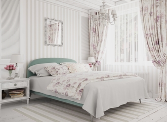 Фактура обивочного материала подбирается дизайнерами с учетом технологических и стилевых особенностей кровати.