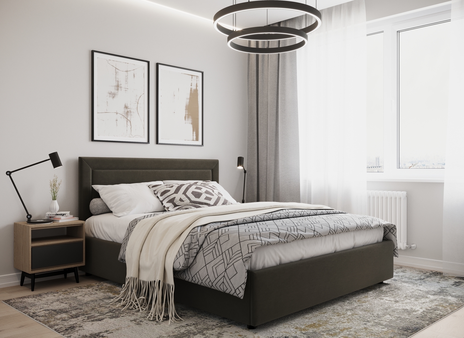 Создать гармоничный интерьер и завершить образ спальни помогут дополнительные аксессуары, например: тумбы, банкетки, подушки.