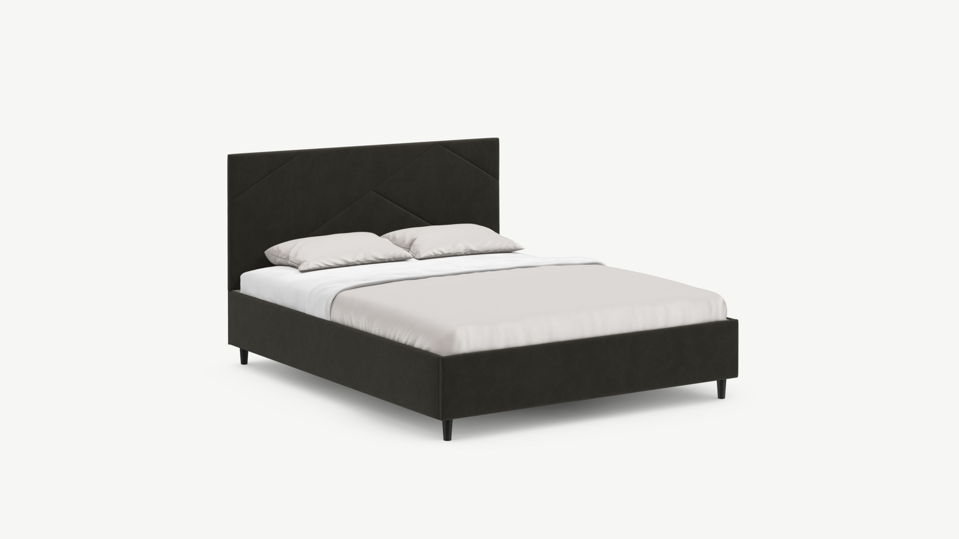 Элегантным и практичным акцентом служат скрытые карманы, расположенные по его углам. Лаконичные формы объемных царг создают единый гармоничный образ и фокусируют внимание на центральном текстурном элементе кровати.