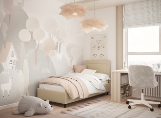 Фактура обивочного материала подбирается дизайнерами с учетом технологических и стилевых особенностей кровати.