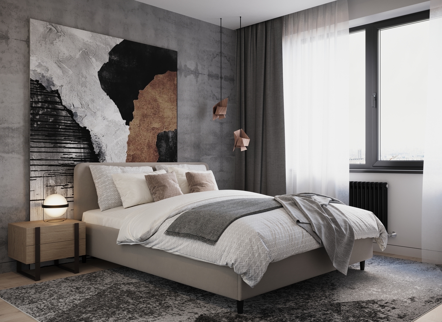 Создать гармоничный интерьер и завершить образ спальни помогут дополнительные аксессуары, например: тумбы, банкетки, подушки.