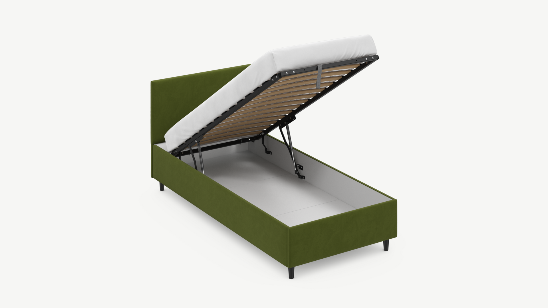 Регулируемый подъемный механизм с газовыми амортизаторами позволяет плавно и бесшумно поднимать и опускать спальное место.