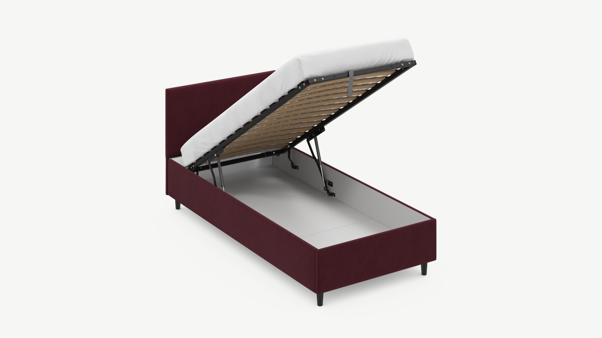 Регулируемый подъемный механизм с газовыми амортизаторами позволяет плавно и бесшумно поднимать и опускать спальное место.