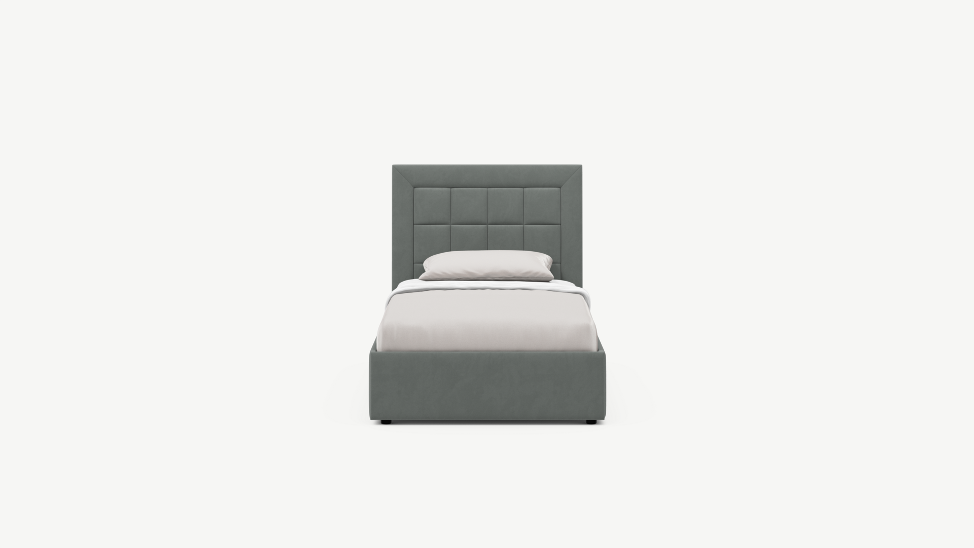 Изголовье декорировано рельефным рисунком стежки в крупный квадрат, получившим особую фактуру за счет глубины шва.
