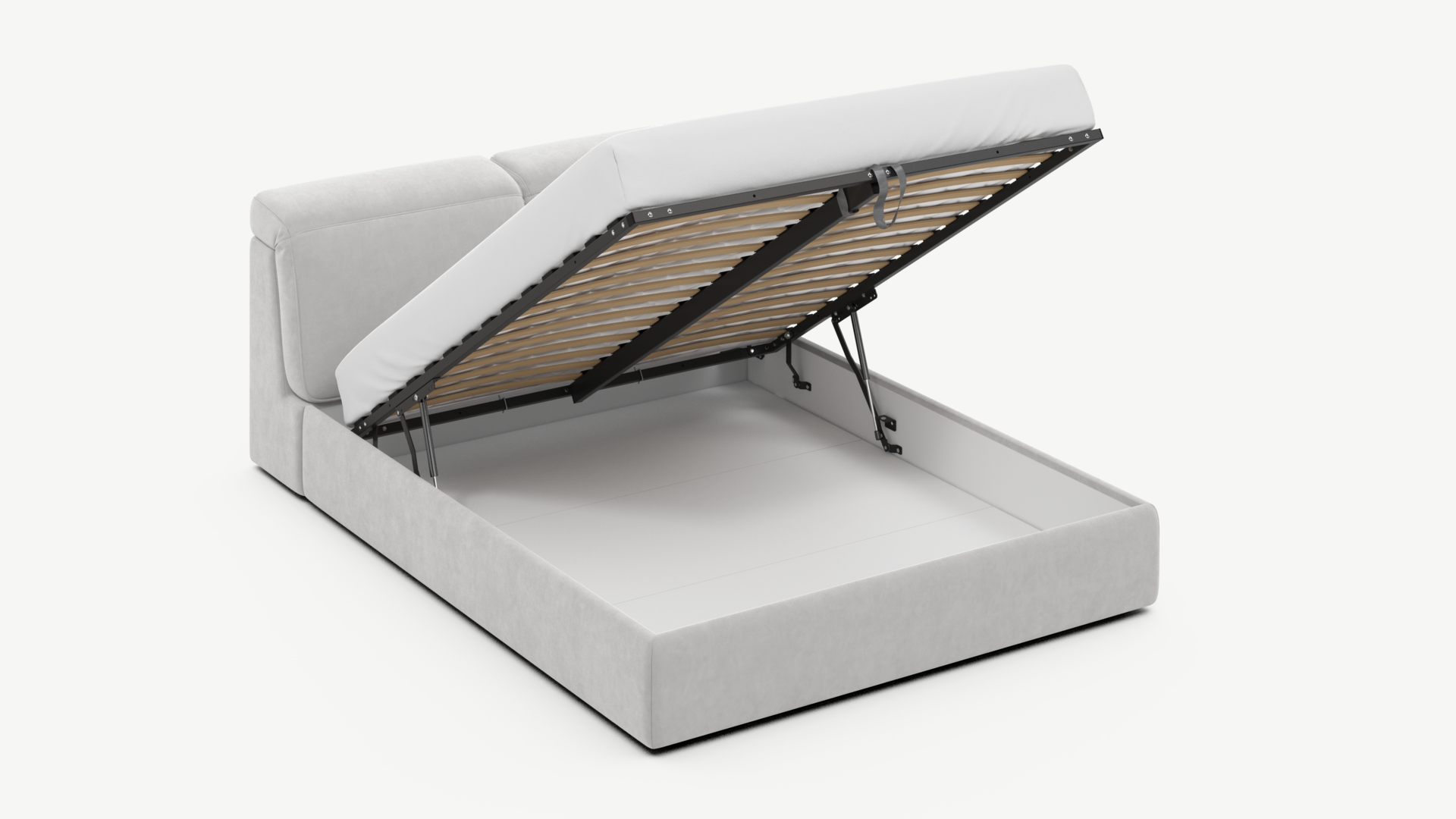 - Скрытая под основанием вместительная емкость без внутренних перегородок позволяет использовать всю площадь подкроватного пространства для хранения вещей.