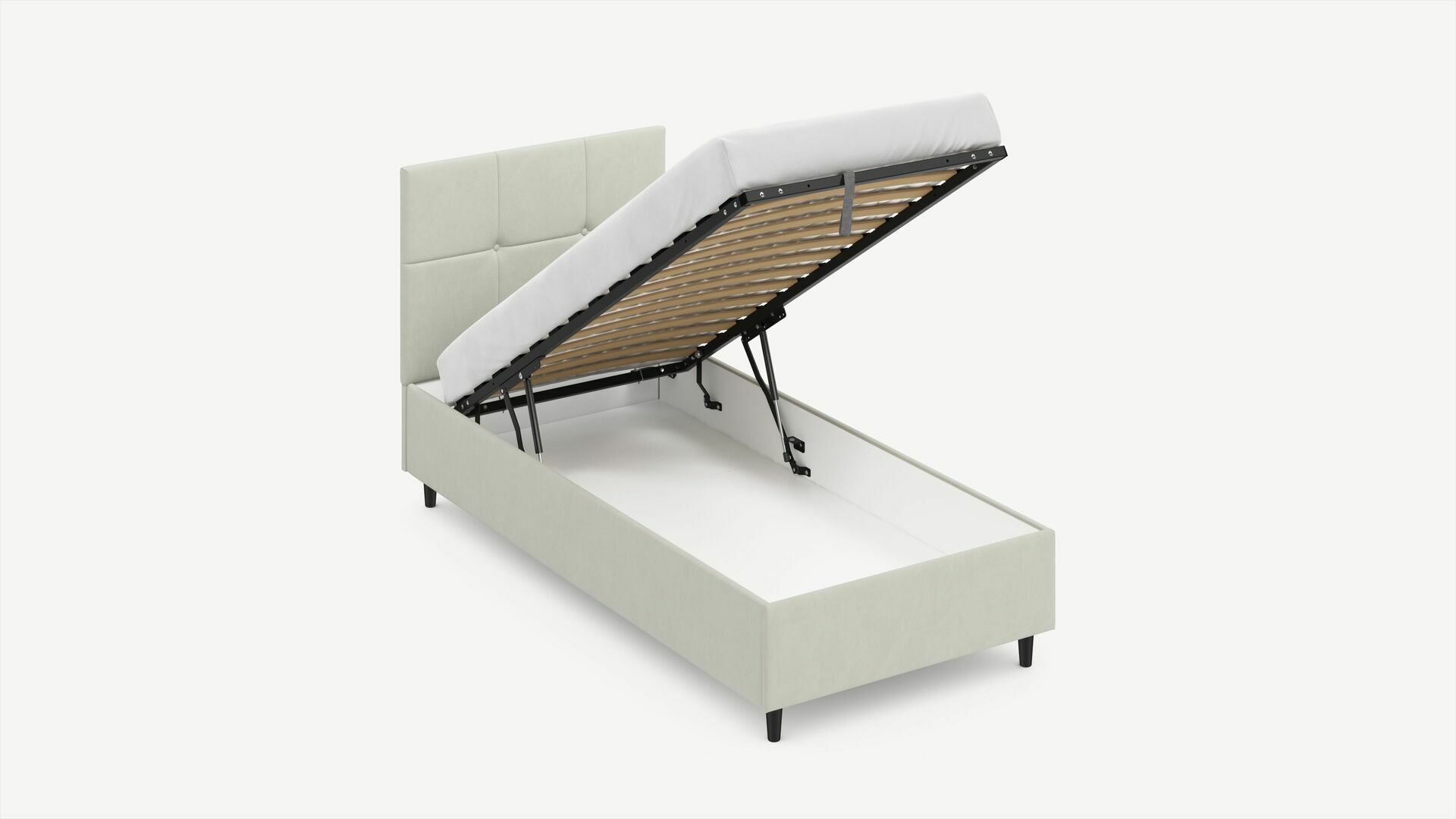 • Скрытая под основанием вместительная емкость без внутренних перегородок позволяет использовать всю площадь подкроватного пространства для хранения вещей.
