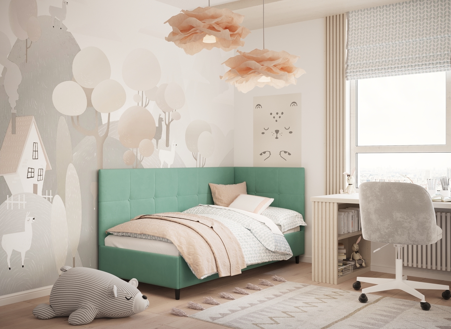 MOON FAMILY 1261 объединяет функциональность и стиль, создавая гармоничное пространство для отдыха и творчества. Кровать доступна в левостороннем и правостороннем исполнении, что позволяет легко адаптировать ее под любые интерьерные особенности.