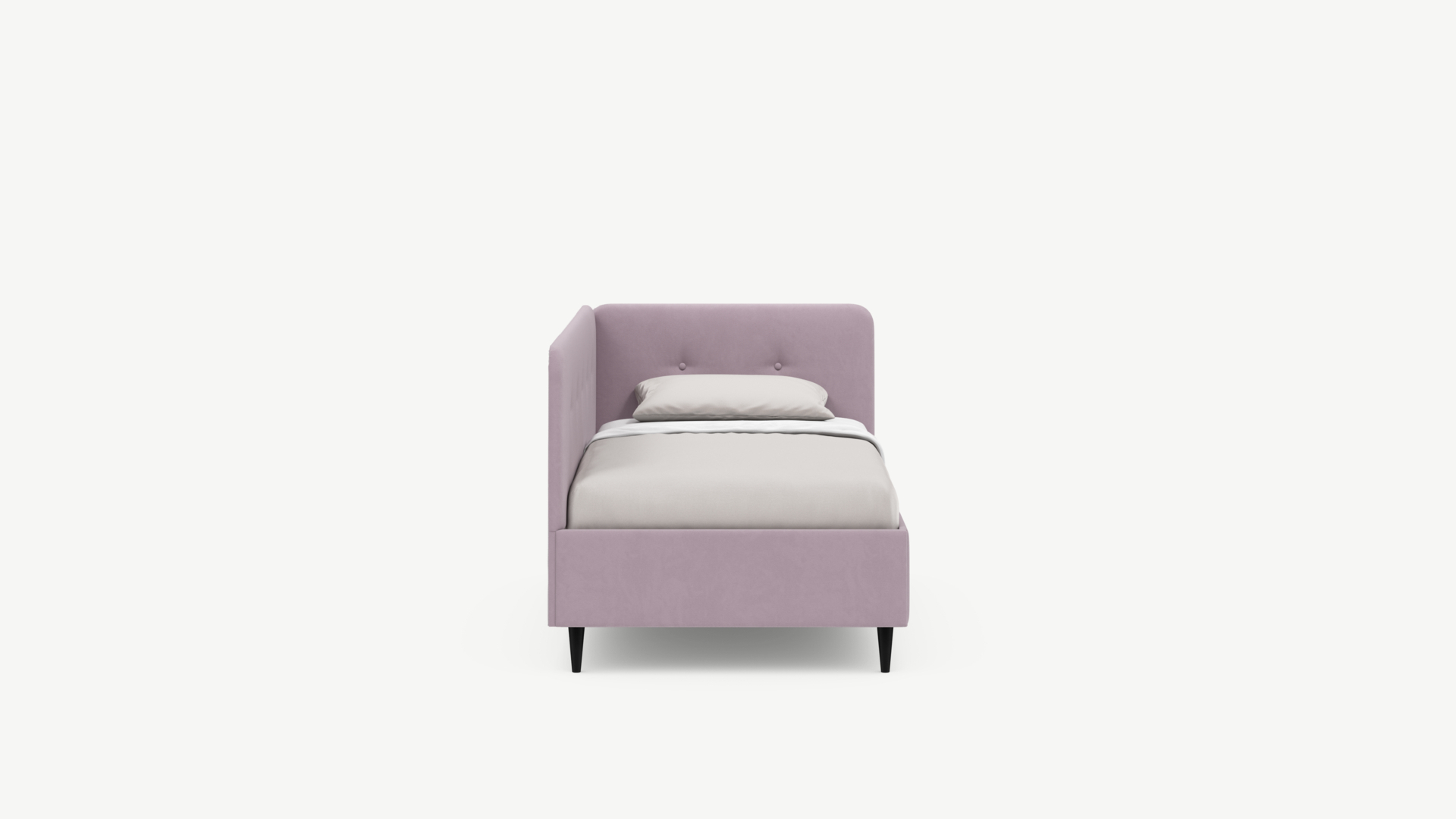Угловая односпальная кровать MOON FAMILY 1253 с мягкой спинкой и изголовьем обладает округлыми формами, привносящими в интерьер нотки нежности. Изголовье, украшенное пуговицами, добавляет окружающему пространству шарм и уют. Высокие опоры придают кровати визуальной легкости, а также обеспечивают удобство во время уборки.