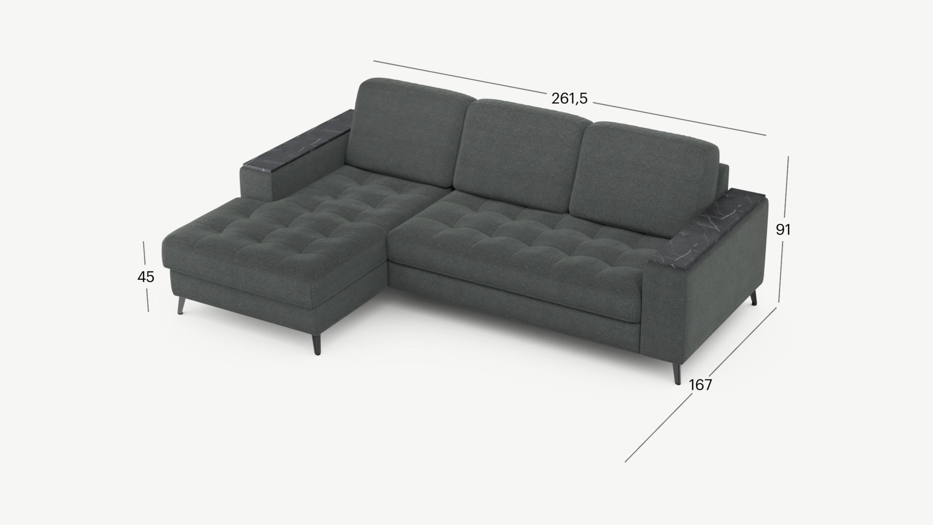 261.5x167x91 см