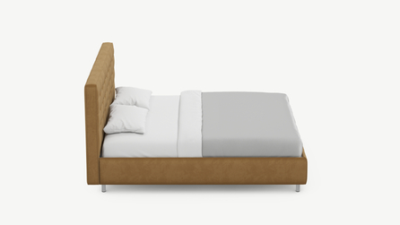 Оформите образ кровати, выбирая обивочный материал, который подчеркнет звучание Вашей спальни и отразит Ваш вкус. Обратите внимание на однотонный гладкий велюр, который усиливает объемную фактуру стежки.