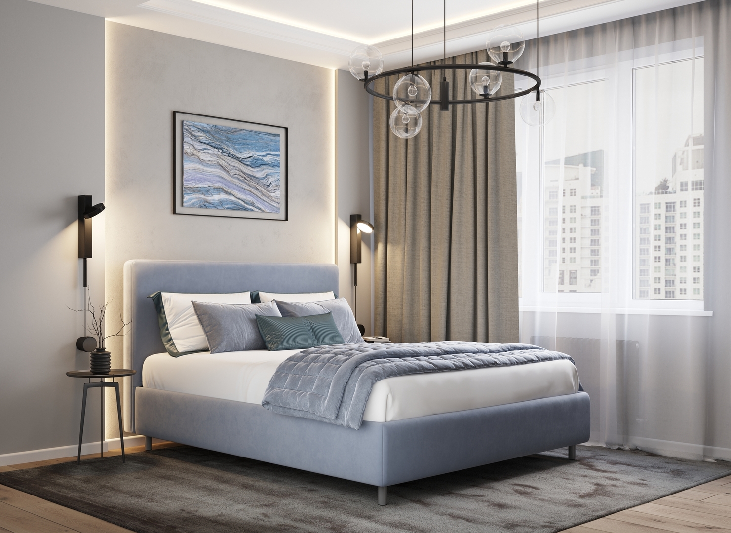 Творческий подход к выбору обивочного материала меняет образ дизайна. Велюр за счет своей бархатистой фактуры привносит в пространство шика и утонченности. Шенилл дополняет оформление спальни природными текстурами, создавая атмосферу тепла и уюта.