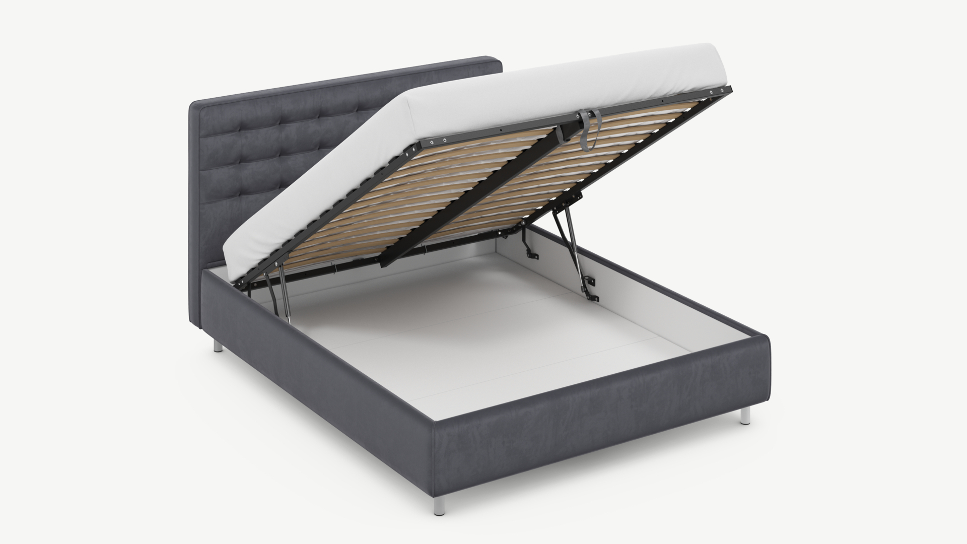 • Скрытая под основанием вместительная емкость без внутренних перегородок позволяет использовать всю площадь подкроватного пространства для хранения вещей.