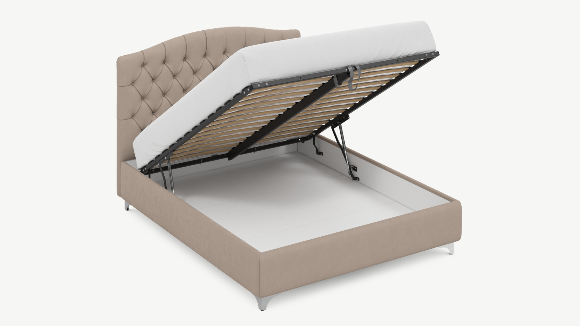 • Скрытая под основанием вместительная емкость без внутренних перегородок позволяет использовать всю площадь подкроватного пространства для хранения вещей.