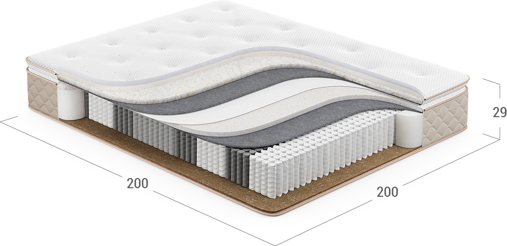 Надежно изолирует комфортные слои от соприкосновения с пружинным блоком и защищает материалы наполнения матраса от износа.