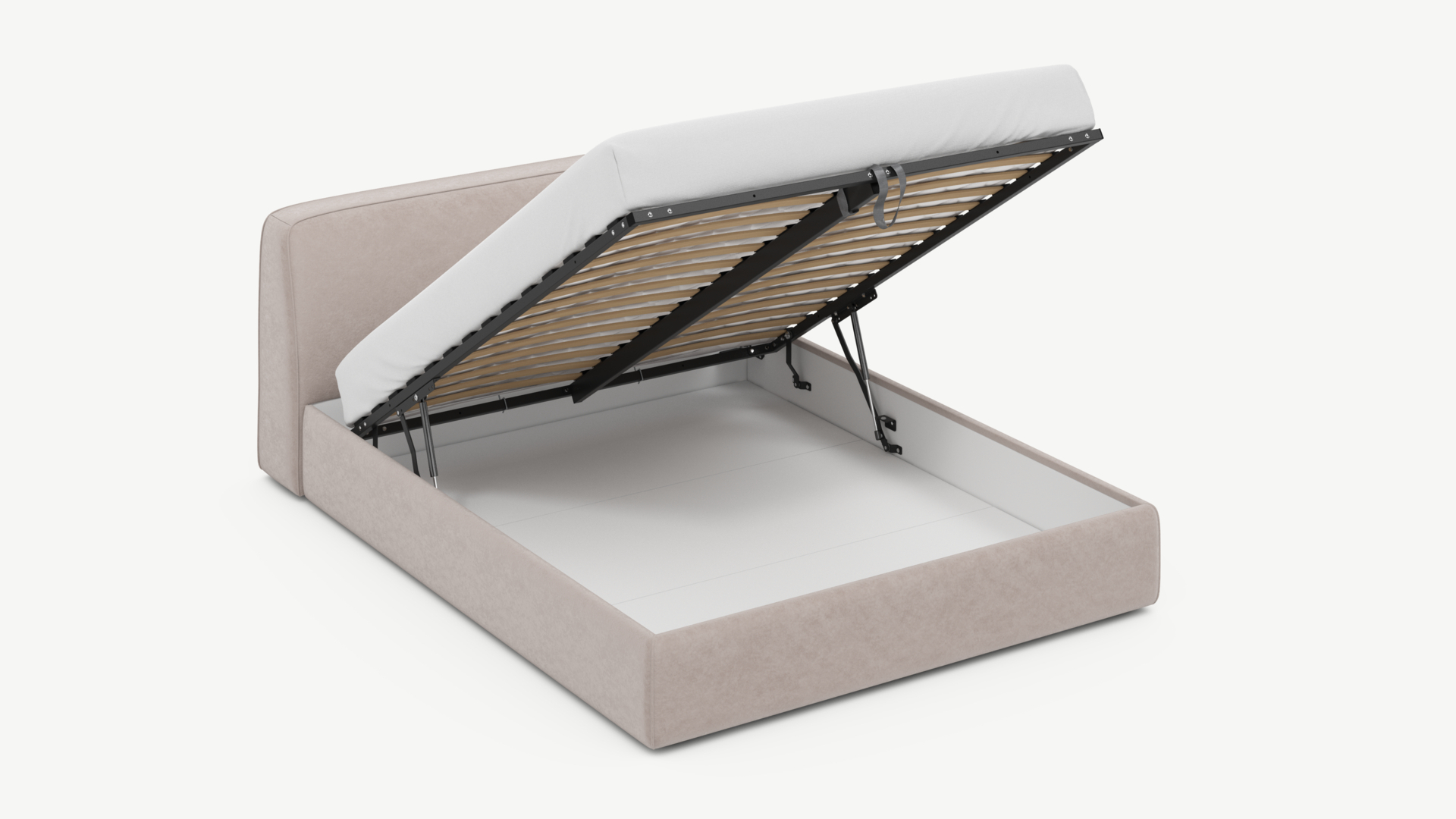 • Скрытая под основанием вместительная емкость без внутренних перегородок позволяет использовать всю площадь подкроватного пространства для хранения вещей.